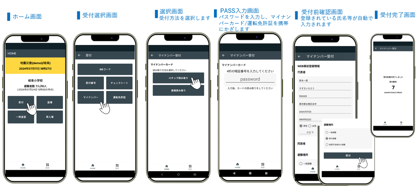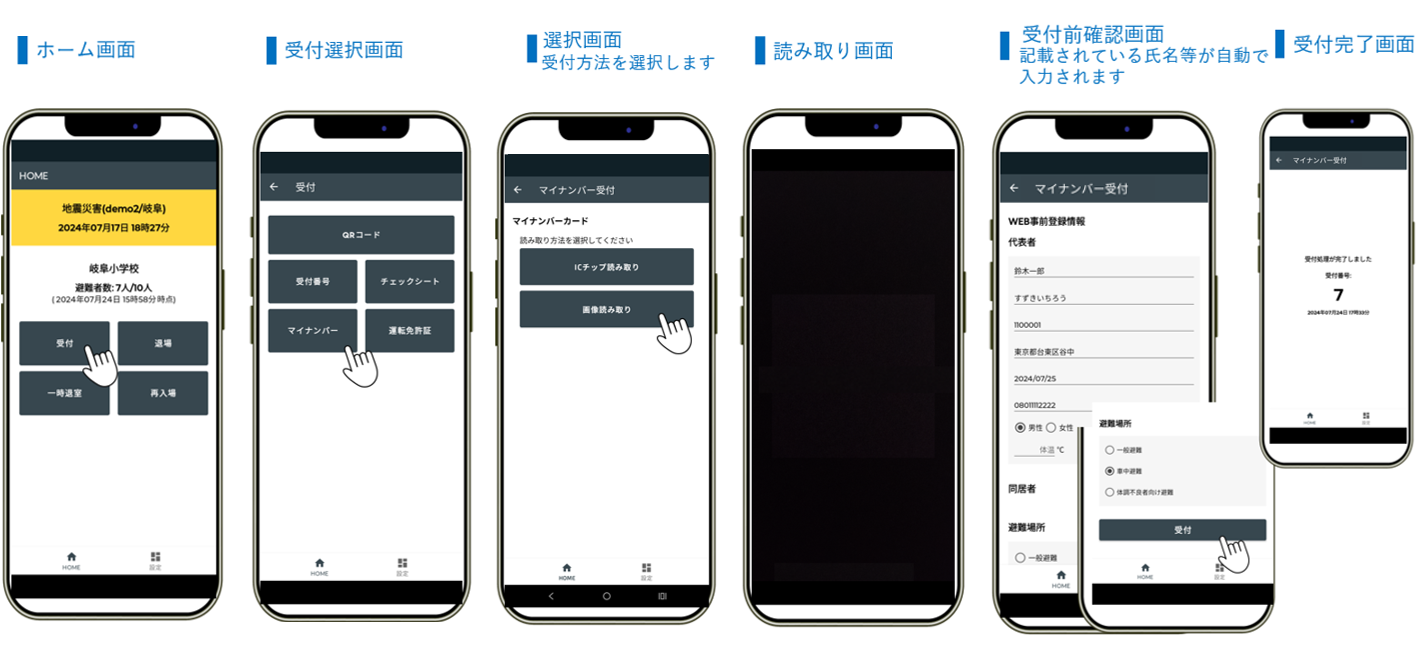 避難所を運営する自治体様向けの機能をご紹介します。災害時、住民の個人情報を取り扱う自治体様には、普及しつつあるマイナンバーカードにも対応し、より見やすく、操作性の高い機能をご用意しました。